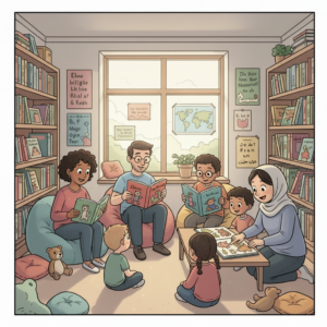 Wir beschäftigen uns mit dem Thema Vorlesen und den vielen positiven Auswirkungen auf Kinder und die Eltern-Kind-Beziehung. Im Workshop können Eltern entdecken, wie sie ihre Kinder durch Geschichten in ihrer Muttersprache optimal fördern können, besuchen die Bibliothek und entdecken die Angebote an zweisprachigen Kinderbüchern. Je nach Gruppe kann gemeinsam Vorlesen geübt werden.